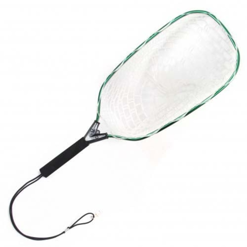 A lightweight, economical net. Clear net makes releasing fish quicker/easier. Aluminum hoop and plastic handle keep the weight down. Foam covered handle makes it easier to grip. Over Dimensions - 22.5" L X 8" W Net Dimensions - 14.5" L X 8" W X 10" D Weigh