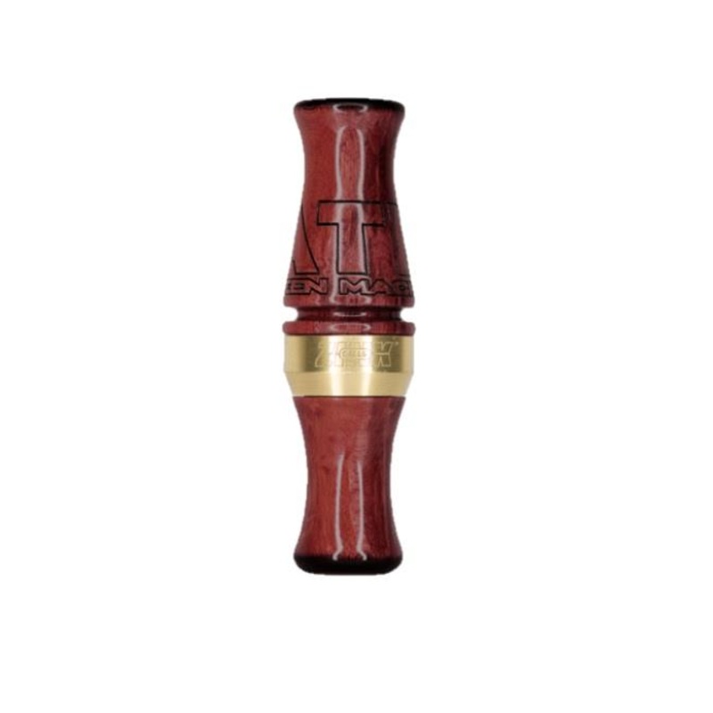 ATM Green Machine Custom Deluxe Duck Call Constructed with beautiful African Padauk wood, featuring a matching mouthpiece and end piece for a seamless design. It is brass banded and comes with custom laser engraving for a distinctive, personalized touch. T