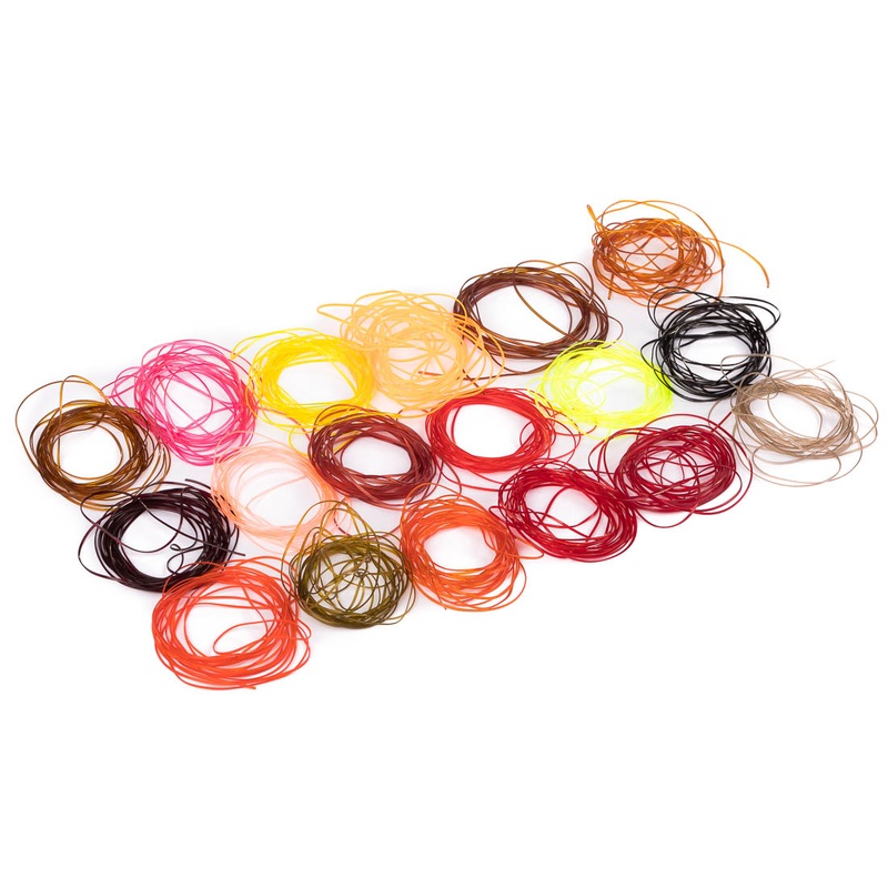 This material enables betterimitations of many insects and minnow bodies. The transparency of thevinyl material allows the light to shine through and creates an attractive appearance. For instance, Chironomid-Patterns, damselfly nymphs, and Mayfly nymphs can be tied with this as a body material. It can be used as ribbing or by itself to create beautiful Blood Worms, Chironomid, and wet fly bodies. Body Glass Half Round MICRO (BGM) is an outstanding, highly robust ribbing material for its size.