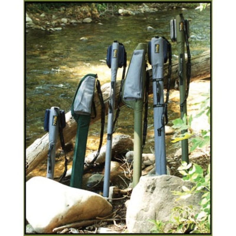 BW Sports Rod/Reel Tubes|9′ 2 piece single|9’6″ 4 piece single|9′ 2 piece double|9’6″‘ 4 piece double|Gray on Olive|Blue on Gray
