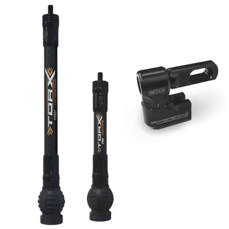 Product Details Add ultimate balance and stability to your hunting bow and reduce shot-induced vibration with the CBE Torx Carbon Micro Stabilizer Combo. Pairing 2 Torx Carbon Micro Stabilizers with a front and back bar quick disconnect, this combo helps y