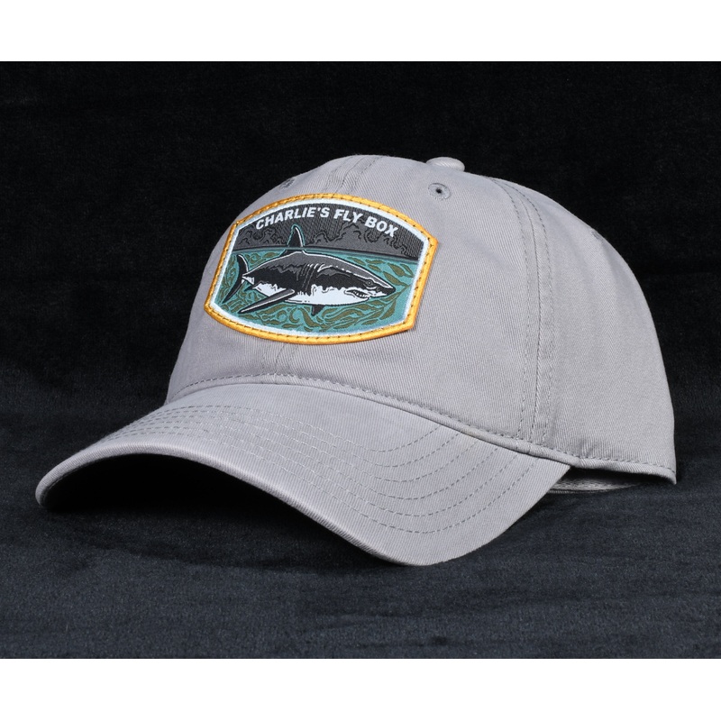 04337CFB Soft Fit Hat, Gray with Great White Shark Logo