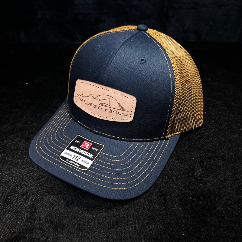 0004CFB Trucker Hat, Navy/Gold with Leather OG logo Patch