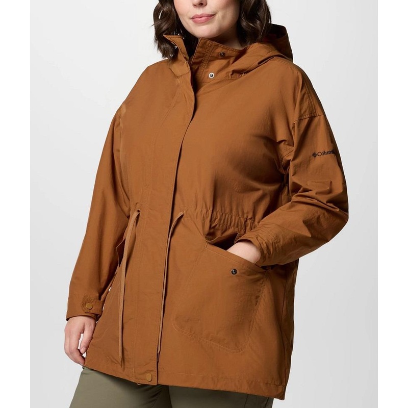 Columbia Pardon My Jacket (Plus) No need to worry about a little drizzle in this durable jacket made of water-resistant recycled polyester and an adjustable hood to keep weather from dampening your day. PRODUCT FEATURES *Water-and-wind-resistant fabric she