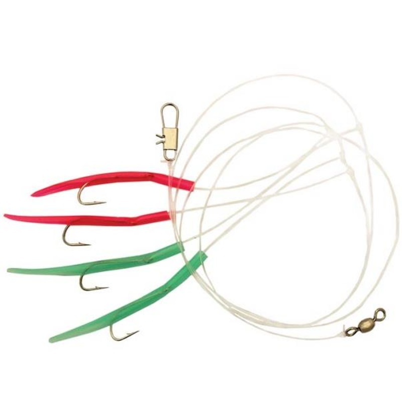 Compac Mackerel Worm Rig PRODUCT FEATURES: *20 lb test mono line, 46"length*1/0 Limerick hooks*Rigged with crane swivel and snap swivel.