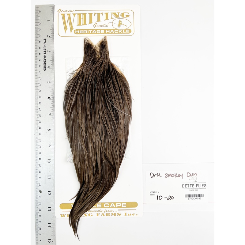 Dark Smokey Dun – Whiting Heritage Hackle Rooster Cape – Grade 2