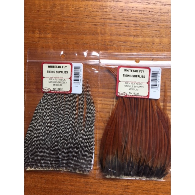 Economical assortment of premium genetic hackle. Sized for 12-14. Colors: Grizzly, Cream, Ginger, Medium Dun, Brown, Black, Item# 9318