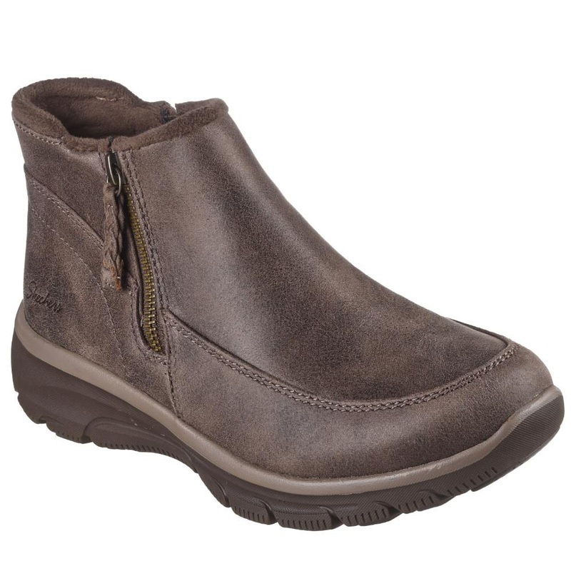 Stay warm all chilly season in feet-loving comfort with Skechers Relaxed Fit Easy Going – Into Fall. This ankle boot features a vegan leather upper with chenille lining, side zip closure and a cushioned Skechers Air-Cooled Memory Foam insole.