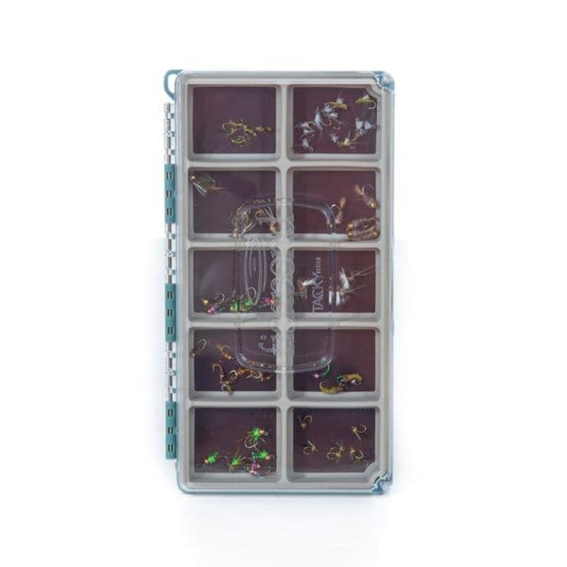 Ten compartments provide specialized organization for each type, size, or color of fly, while silicone walls prevent mixing between distinct patterns. A strong, magnetic base and clear lid mean youll spend less time fumbling with your fly box and more time on the water.