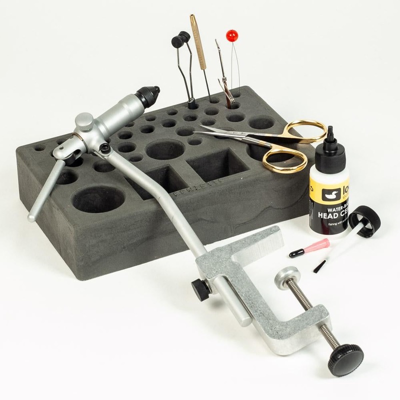 This kit provides the vise and tools you need to get started tying flies. The Renzetti Apprentise vise, made right here in Florida, is a simple, well made vise, built to last. It comes with a clamp base and is compact for easy storage and for travel. While