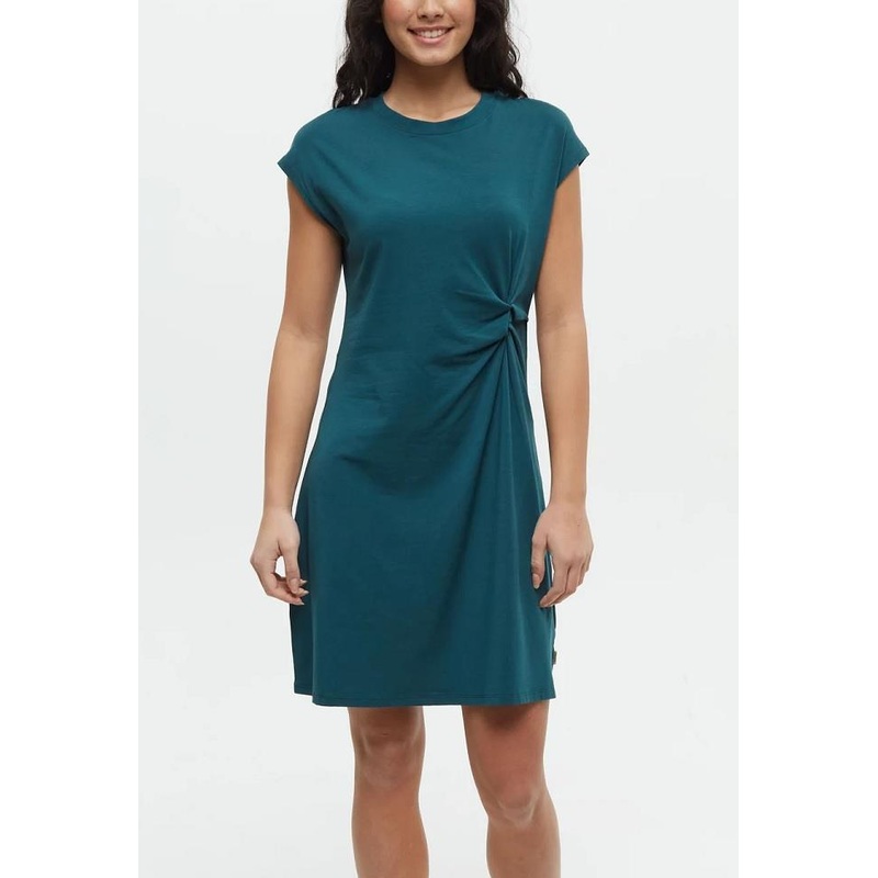 Linden Dress The Linden Dress is a go-to you can count on. Its gathered front and relaxed fit make this sustainable, sweat-wicking style a closet staple. PRODUCT FEATURES *Fit & Flare silhouette*Short dolman sleeve*Crew neck with ribbed neck band*Knot fron