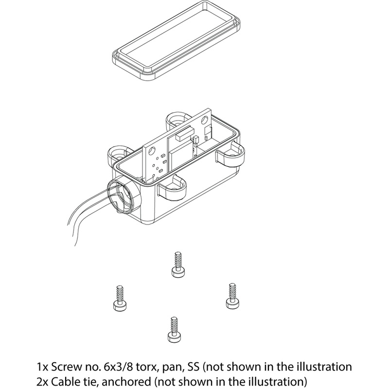 1x Screw, no. 6×3/8, Phillips, pan, SS (not shown in the illustration)