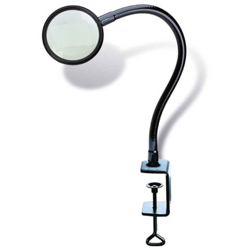 For tying tiny flies or Atlantic salmon flies. Comes standard with 2x magnification. It has a Rimless magnifier in a 24" gooseneck. Hard coat finish. Mounts to tying bench with a quick connect fitting. C-Clamp with quick connection can be purchased separat