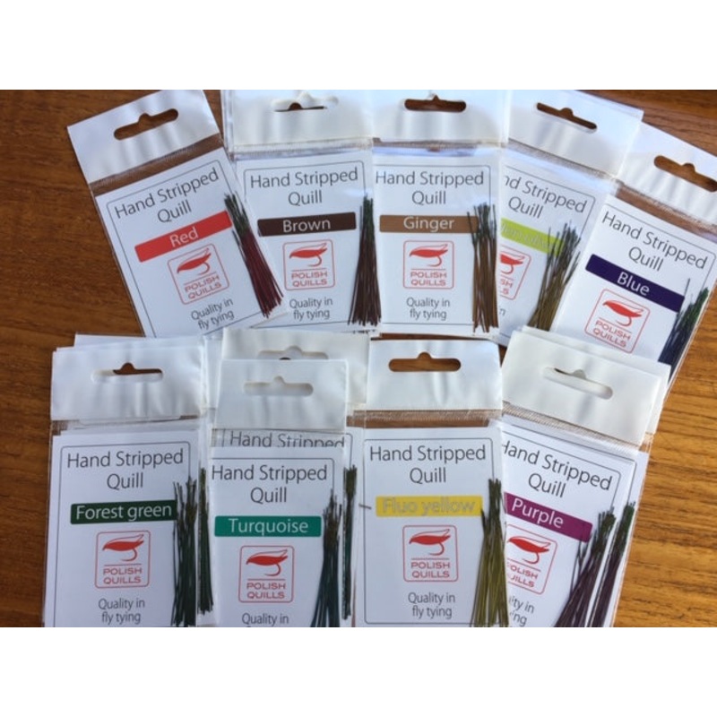 Imported from England. Perfect for all Quill dry and buzzer patterns. Colors: Brown, Ginger, Golden Olive, Medium Olive, Pink, Yellow, Forest Green, Purple, Turquoise. Blue, and Fluorescent Yellow. Item# 3028