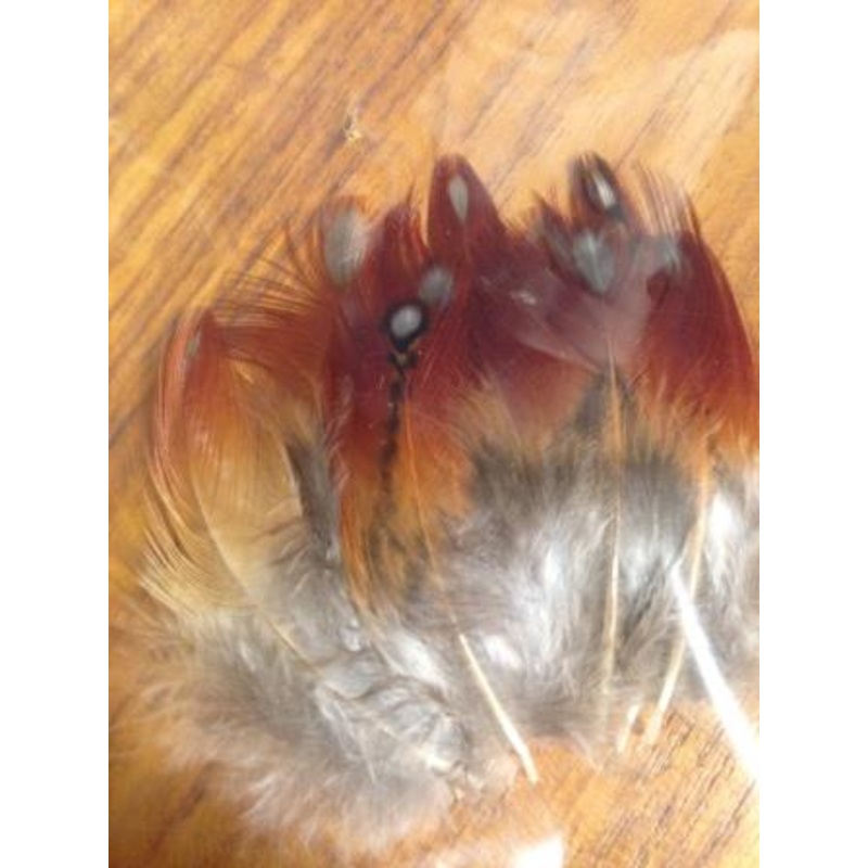Tragopan Pheasant (Temmick's Tragopan) is a magnificent feathered pheasant native to India, China and Central Asia. It is greatly prized prized by Atlantic Salmon Fly tiers. Red feathers dotted with bluish white spotting especially suited for cheeks and wi