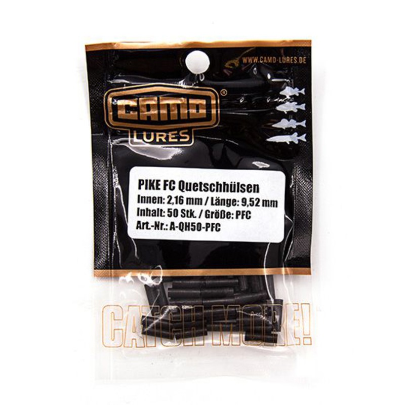 Die Klemmhlsen von Camo fr dickes Fluorocarbon und HardmonoAb einer Tragkraft von 60 lbs. lsst sich Fluorocarbon nur noch schwer per Hand knoten. Hier empfehlen wir die Verwendung passender Quetschhlsen, um eine perfekte Verarbeitung zu ermglichen. Passend