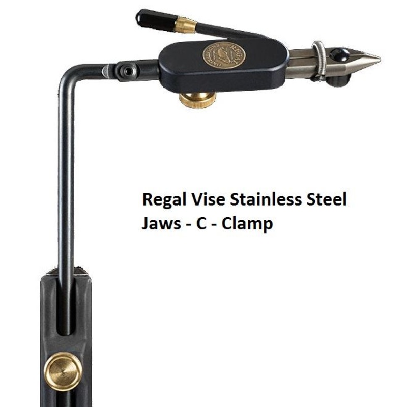 This is a new model with improvements including a more elongated set of jaws made of stainless steel. The hook holding notch is still a part of the jaws. The material clip has been removed, and the handle has been redesigned for easier gripping and opening and closing the jaws. Option of Pedestal base or C-Clamp. Hook size 32 to 2/0. Item# 2036