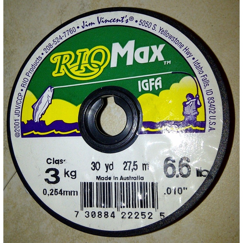 RIO Max IGFA Tippet|2.2 lb .005″ 30 yd|6.6 lb .10″ 30 yd|8.8 lb .11″ 30 yd|13.2 lb .014 30 yd|17.6 lb .016″ 30 yd|26 lb .020 30 yd|53 lb .031 25 yd