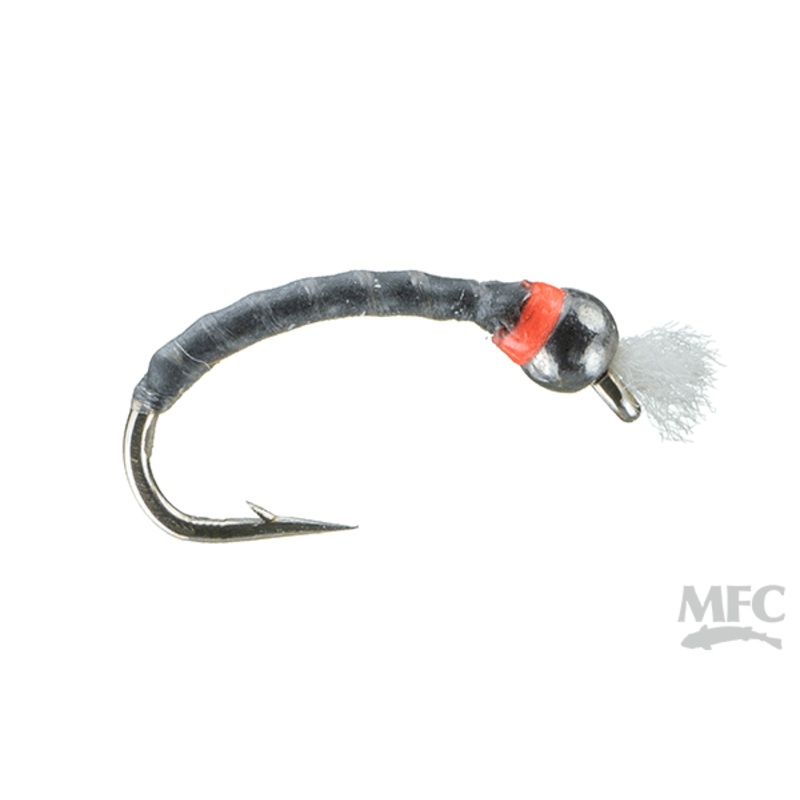 Nice subdued chironomid pupa pattern from the bench of Phil Rowley. The hot spot collar gets a trout's attention from a distance.