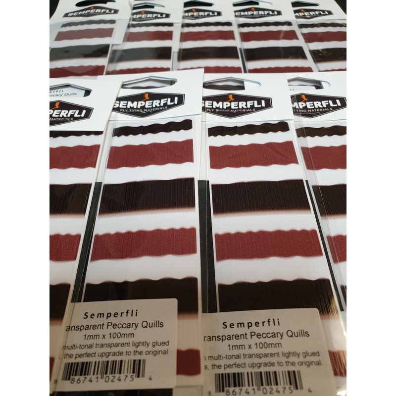 These are incredible synthetic peccary quills, these True Peccary Subs are designed for small flies. With the white, brown and chocolate colours found on true peccary and having transition bands between the colours these are an incredible substitute. 1mm w
