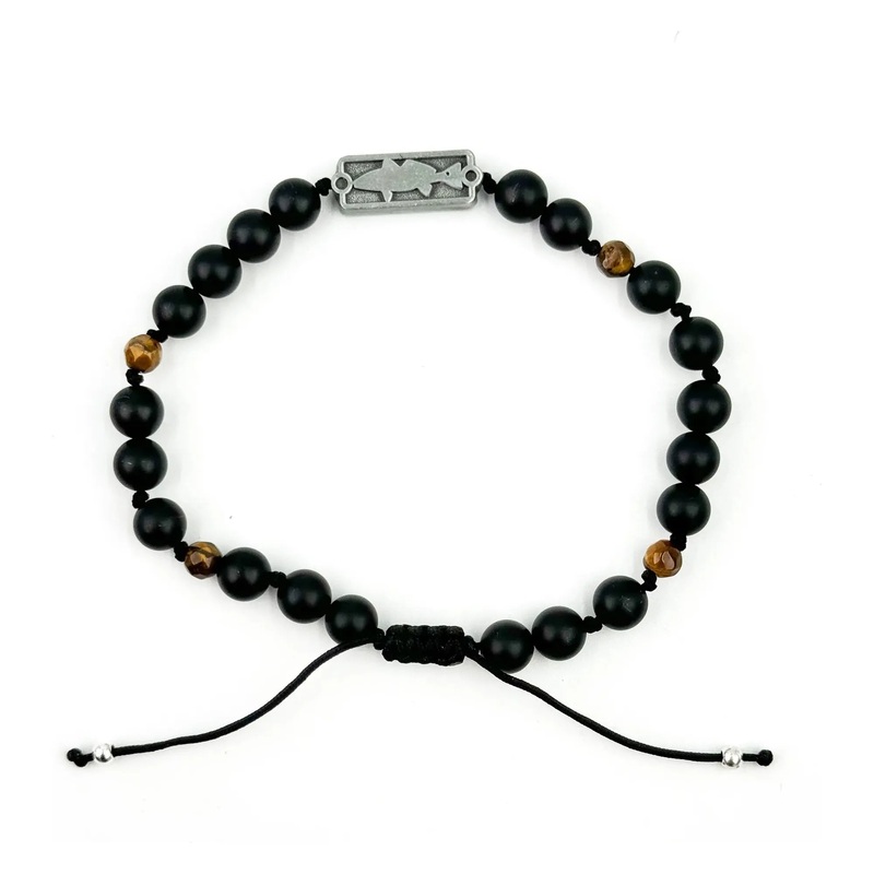 Our Redfish bead sits at the center with the accent of kona stone beads and natural tigers eye. The bracelet closes with a moveable pulley closure to allow for a broad range in wrist size.