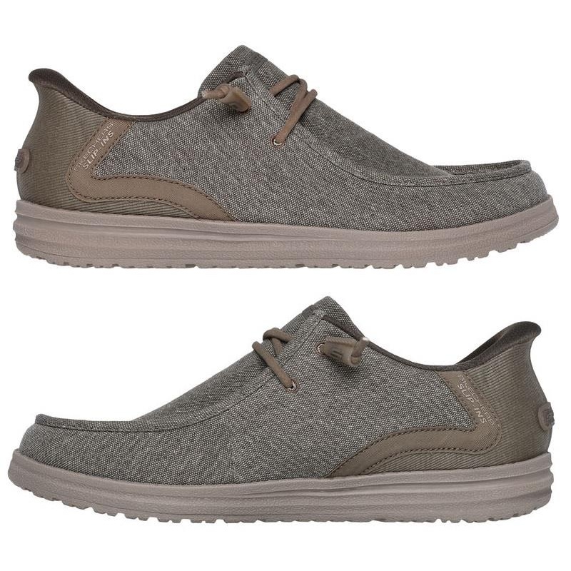 Skechers Slip-ins Relaxed Fit: Melson - Coronado Simply step in and go wearing Skechers Hands Free Slip-ins Relaxed Fit: Melson - Coronado. Designed with our exclusive Heel Pillow, this moc toe style features a Skechers Slip-ins molded heel panel with a ca