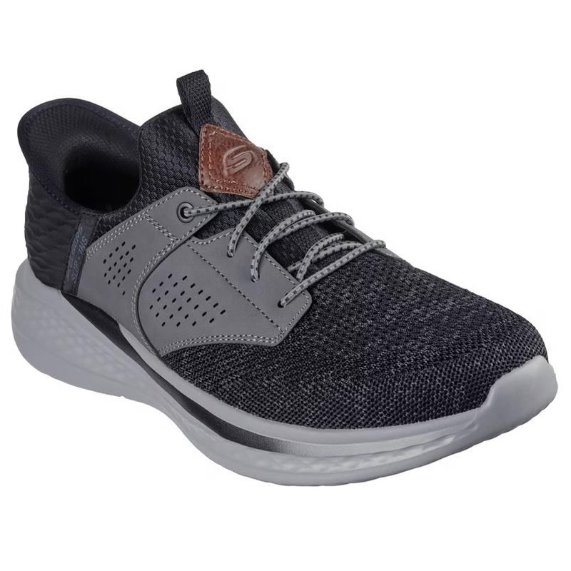 Skechers Slip-ins Relaxed Fit: Slade - Caster Step into convenient walking comfort with Skechers Slip-ins Relaxed Fit: Slade - Caster. Designed with our exclusive Heel Pillow, this stretch-laced style features a mesh and synthetic upper with a charcoal-inf