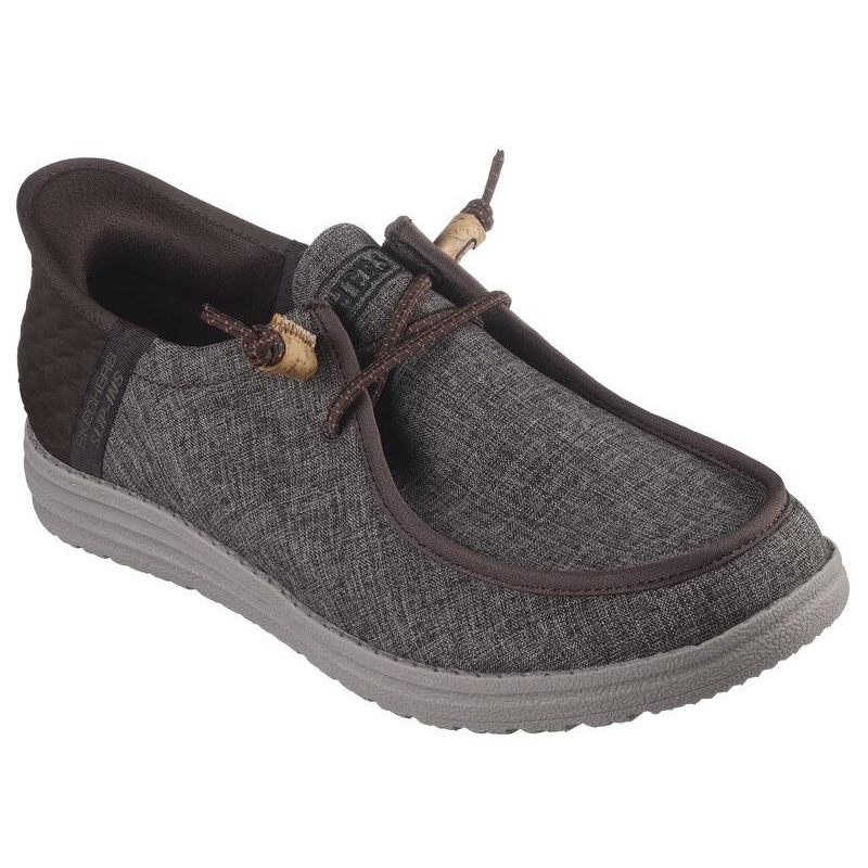 Simply step in and go wearing Skechers Hands Free Slip-ins Relaxed Fit: Melson – Vaiden. Designed with our exclusive Heel Pillow, this vegan moc toe style features a Skechers Slip-ins molded heel panel with a twill upper, cork accented deco laces, and a Luxe Foam Cork cushioned comfort insole.